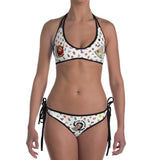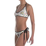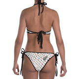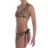 Celebrate Summer with this iconic bikini! The bikini is reversible and features the bold ART WORLD GAME print as well as the cool ART WORLD CARTEL print.